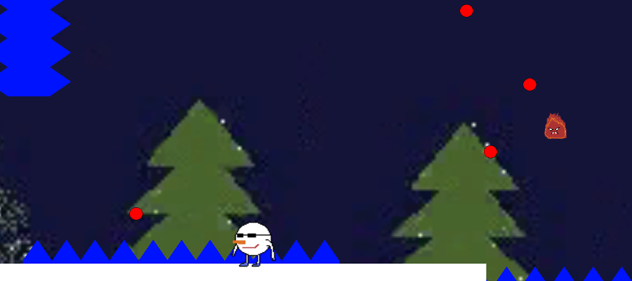 ...In Snowball Adventure, you are a snowball navigating a winter forest. But there are some forest fires along the way! Get too close and you'll be struck by a fireball! If you get struck too many times, you die. You must also avoid the blue icicles as you will die upon touching them. The goal is to get to the blue diamond in the level. There many different pathways you can take, try to find the best one! In this project I worked with the head programmer to create the desired character controller and test other game mechanics to best achieve the desired gameplay feel.