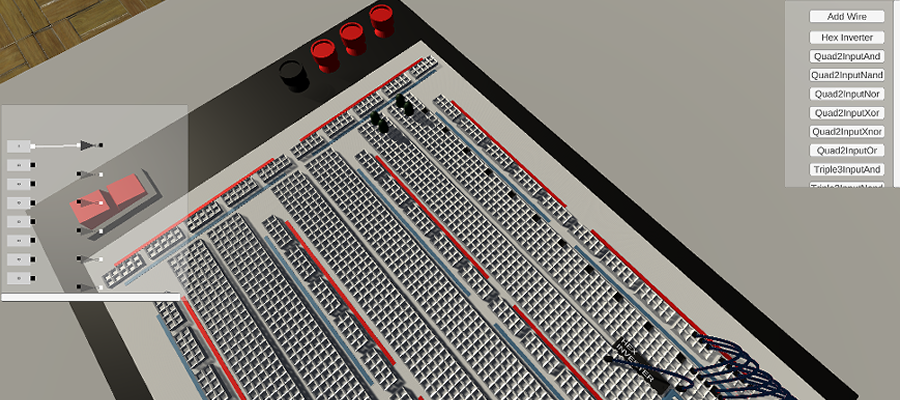 ...Virtual Breadboard is an educational simulator created to combat the lack of tactile experience with a breadboard in virtual or online classes that are learning about Computer Architecture, as Breadboard based labs are a huge way that students can become familiar with computer architecture. Originally, the project was meant to be ported to both VR and mobile to allow students multiple ways to interact with the Virtual Breadboard but was limited to PC due to time constraints.